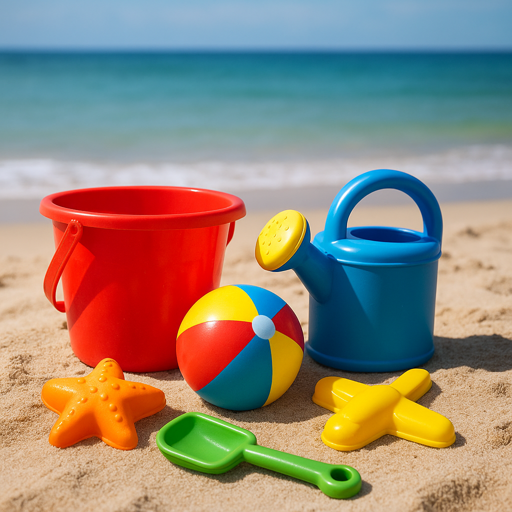 • Foremki plastikowe w różnych kształtach i rozmiarach – do robienia babek z mokrego piasku.