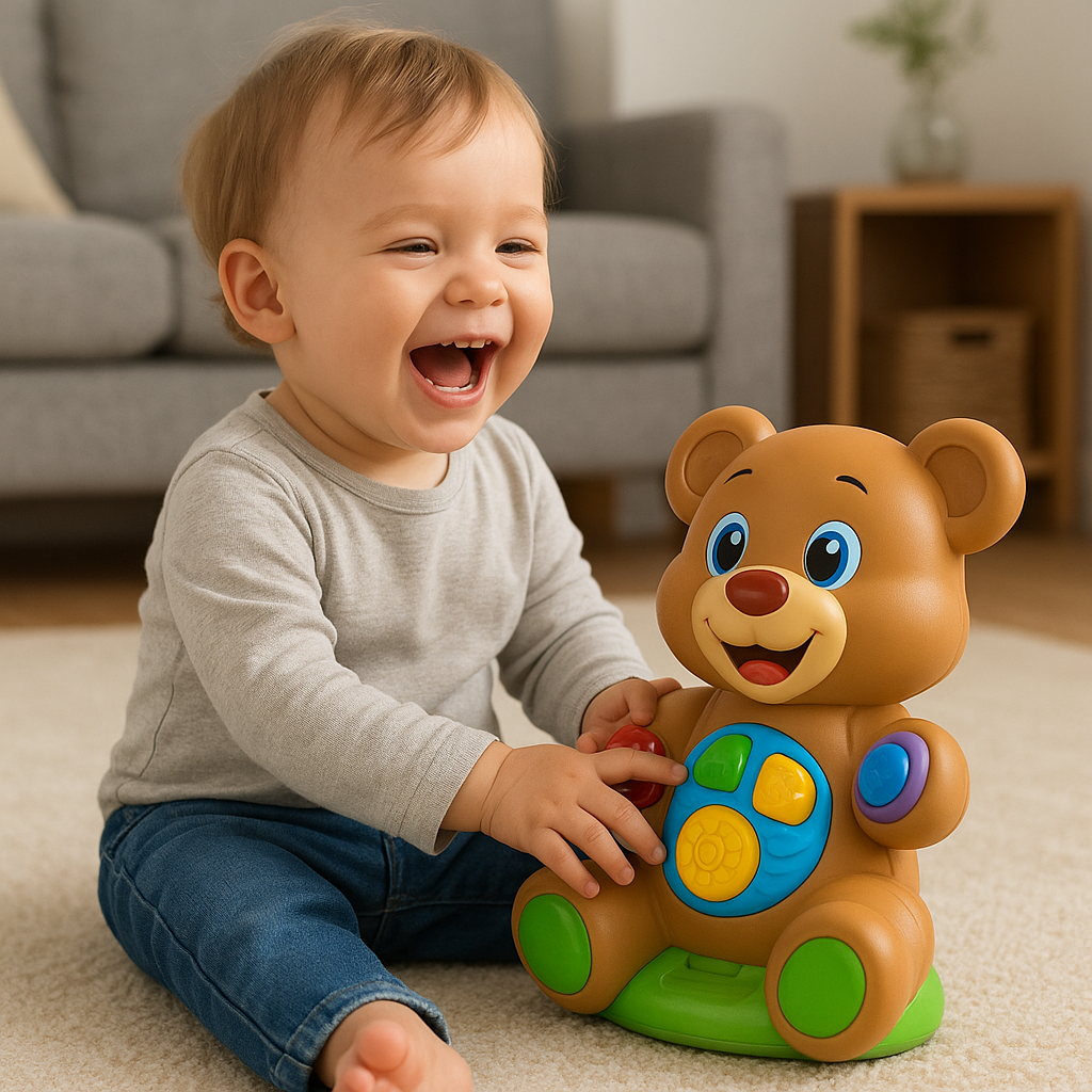 Dzięki emocje generowanym przez interaktywne reakcje zabawki, maluch uczy się rozpoznawania dźwięków i sygnałów wizualnych. Wzmacnia to jego poczucie pewności siebie, gdyż zabawka reaguje na prawidłowe działania.