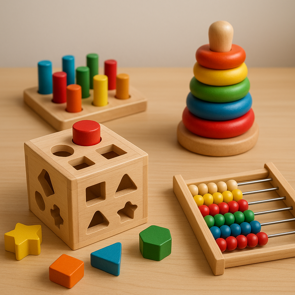 • Dzieci w wieku 1–3 lat – proste układanki dostosowane do małych dłoni, klocki piankowe, koloryzowane drewniane układanki.