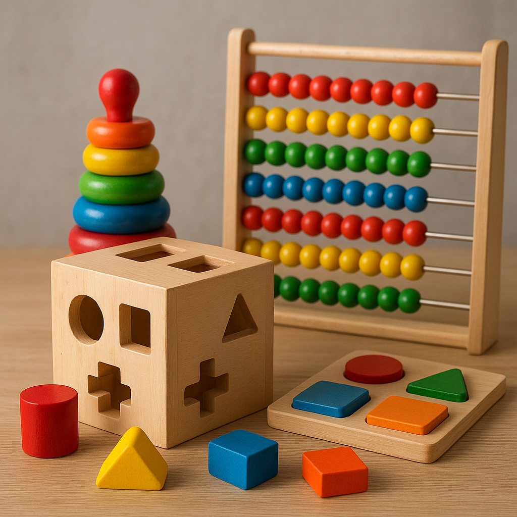 - Klasyczne klocki drewniane – doskonałe dla najmłodszych, bezpieczne i estetyczne.